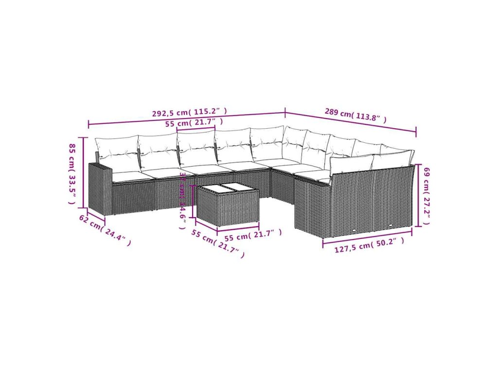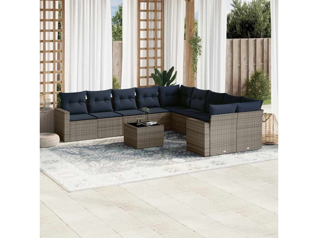 11dílná zahradní sedací souprava s poduškami šedá polyratan 3219511