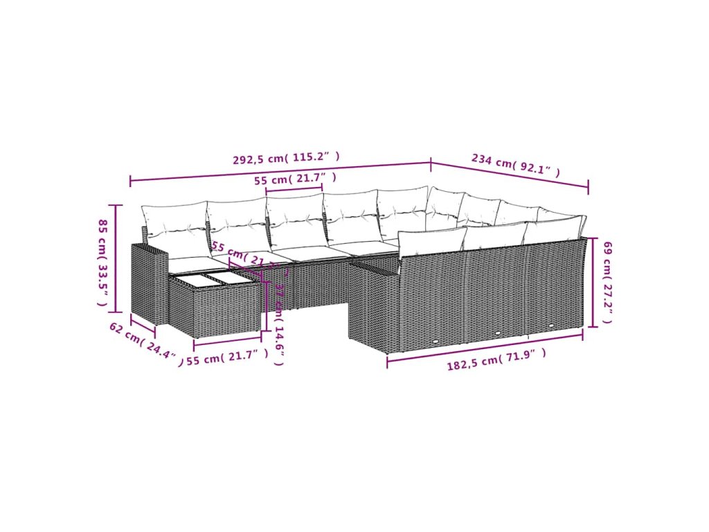 11dílná zahradní sedací souprava s poduškami šedá polyratan 3219522