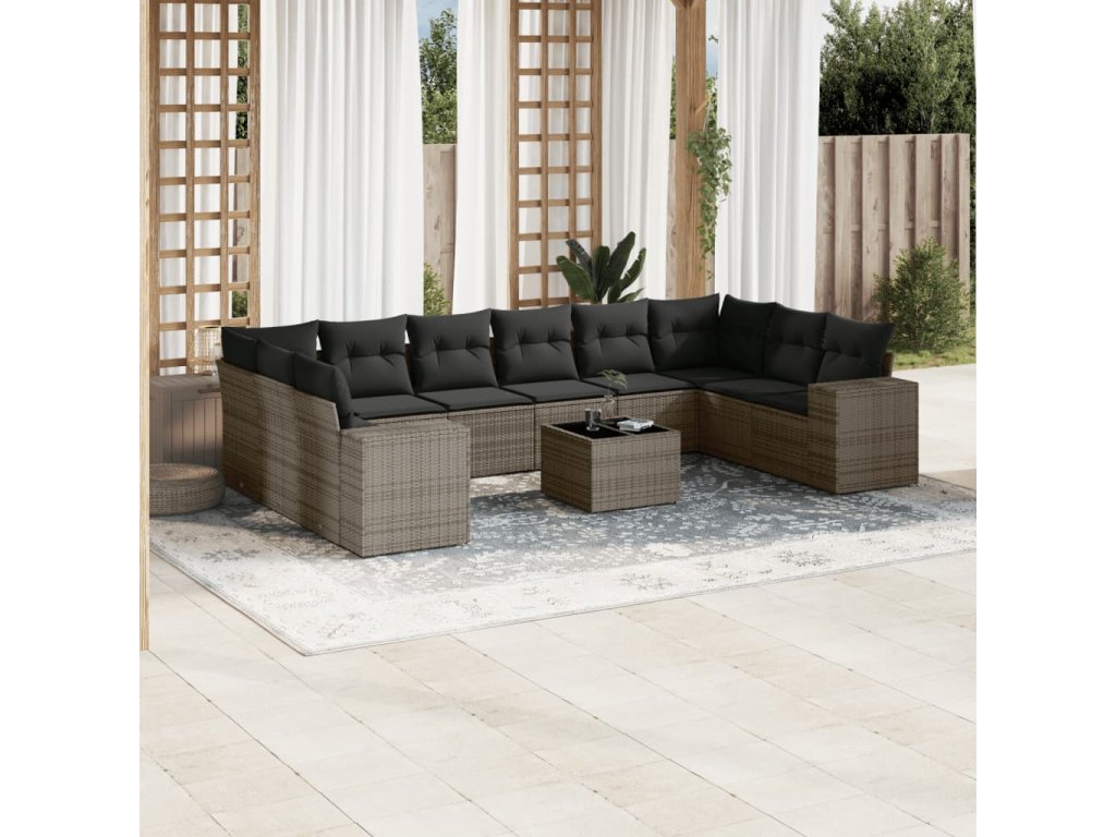 11dílná zahradní sedací souprava s poduškami šedá polyratan 3223079