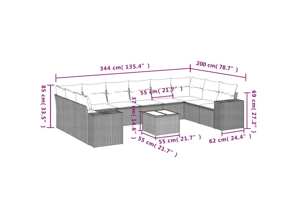 11dílná zahradní sedací souprava s poduškami šedá polyratan 3223081