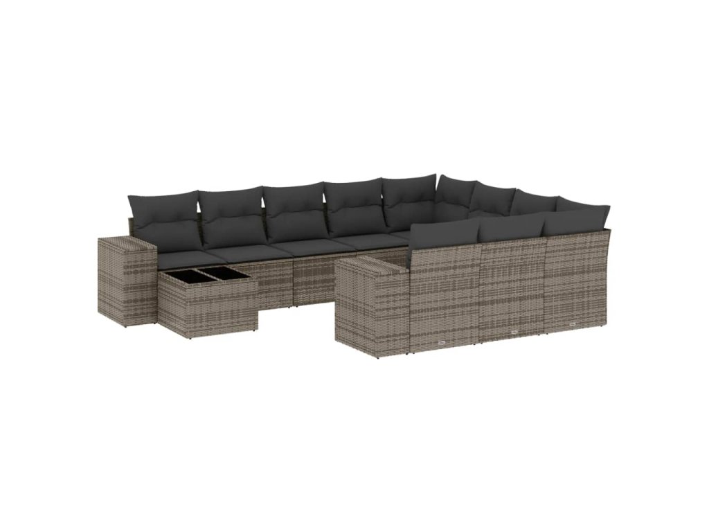 11dílná zahradní sedací souprava s poduškami šedá polyratan 3223129