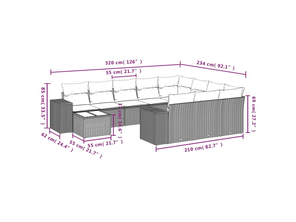 Tato zahradní sedací souprava je dokonalým doplňkem vaší zahrady, terasy nebo dvorku a poskytne vám pohodlné a příjemné místo, kde si můžete povídat s rodinou a přáteli nebo jen tak odpočívat a užívat si pobyt venku.