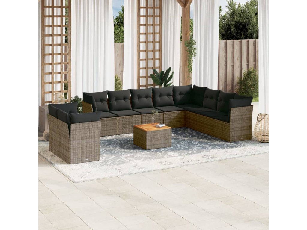 11dílná zahradní sedací souprava s poduškami šedá polyratan 3223722