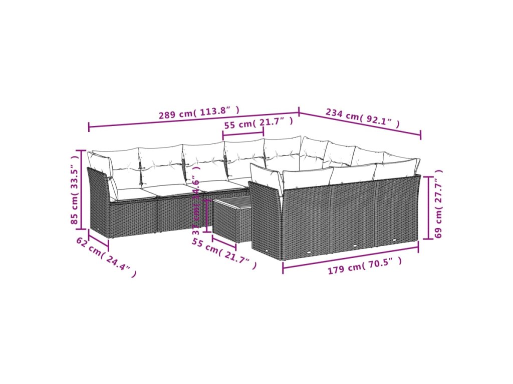 11dílná zahradní sedací souprava s poduškami šedá polyratan 3223841
