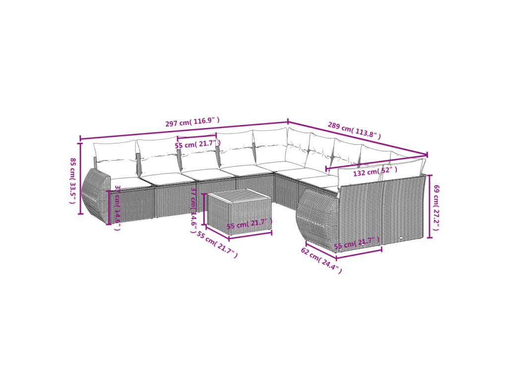 Tato zahradní sedací souprava je dokonalým doplňkem vaší zahrady, terasy nebo dvorku a poskytne vám pohodlné a příjemné místo, kde si můžete povídat s rodinou a přáteli nebo jen tak odpočívat a užívat si pobyt venku.