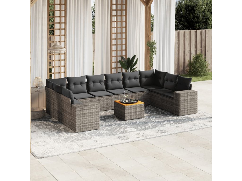 11dílná zahradní sedací souprava s poduškami šedá polyratan 3225619