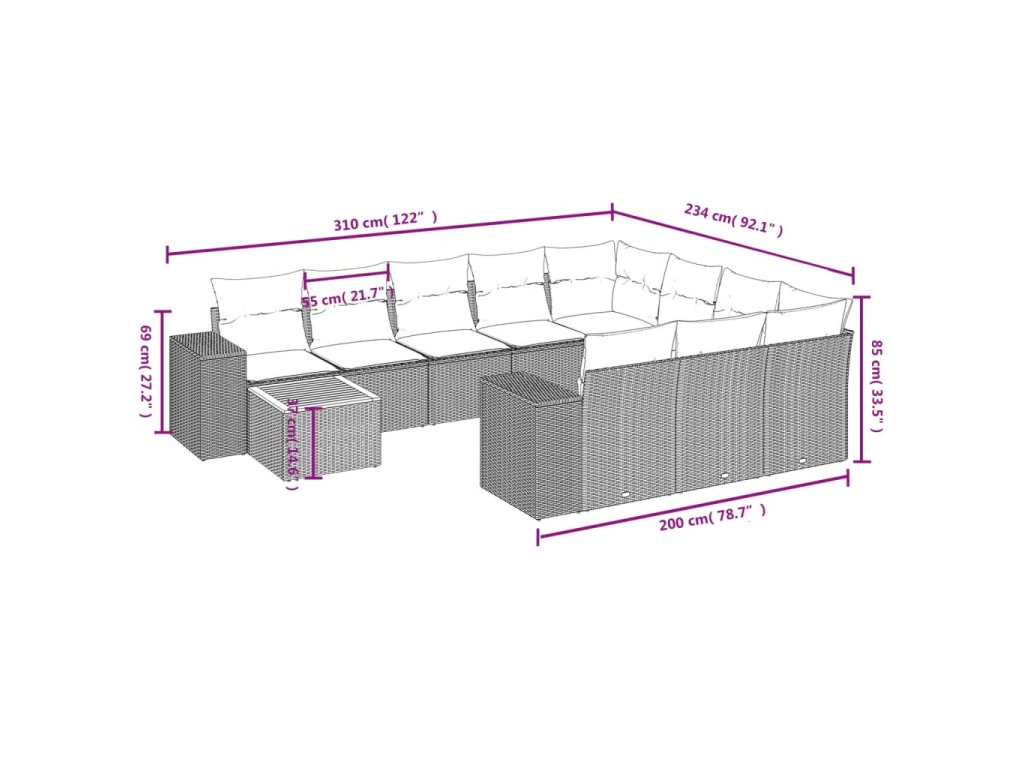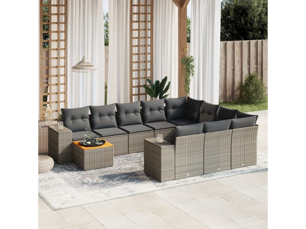 11dílná zahradní sedací souprava s poduškami šedá polyratan 3225633