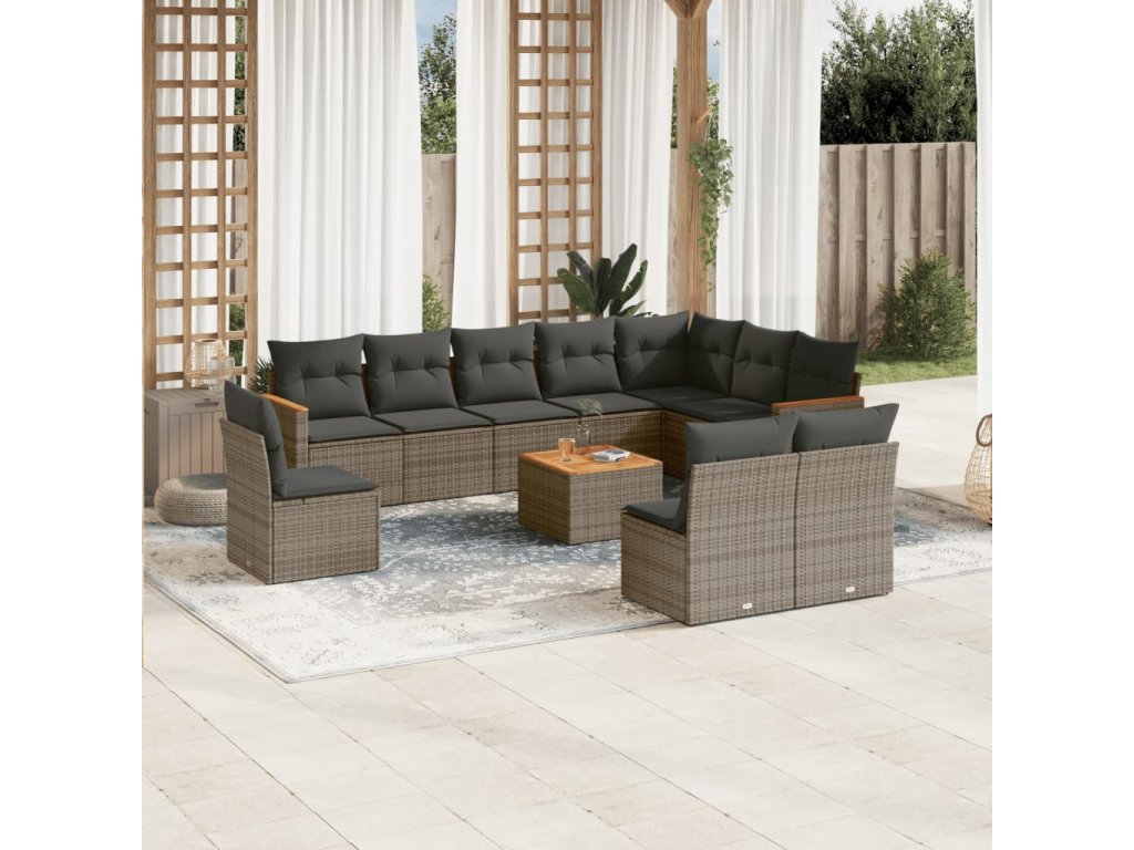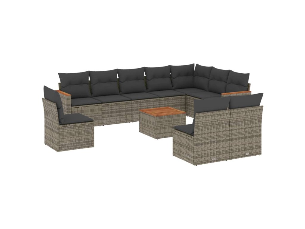 11dílná zahradní sedací souprava s poduškami šedá polyratan 3226081