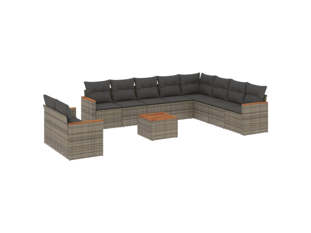 11dílná zahradní sedací souprava s poduškami šedá polyratan 3226123