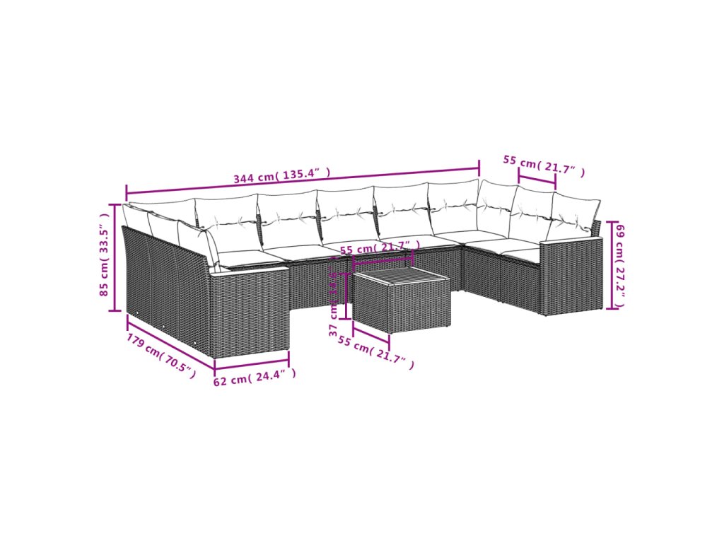 11dílná zahradní sedací souprava s poduškami šedá polyratan 3226333