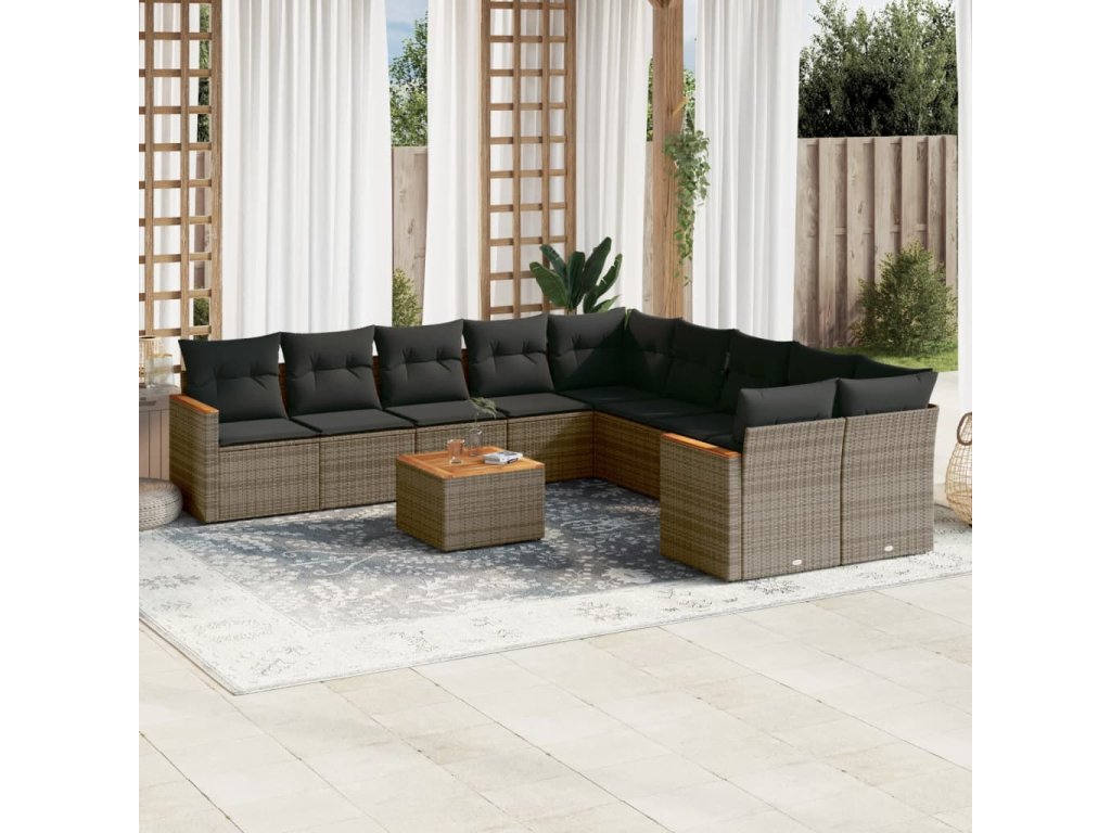 11dílná zahradní sedací souprava s poduškami šedá polyratan 3226361