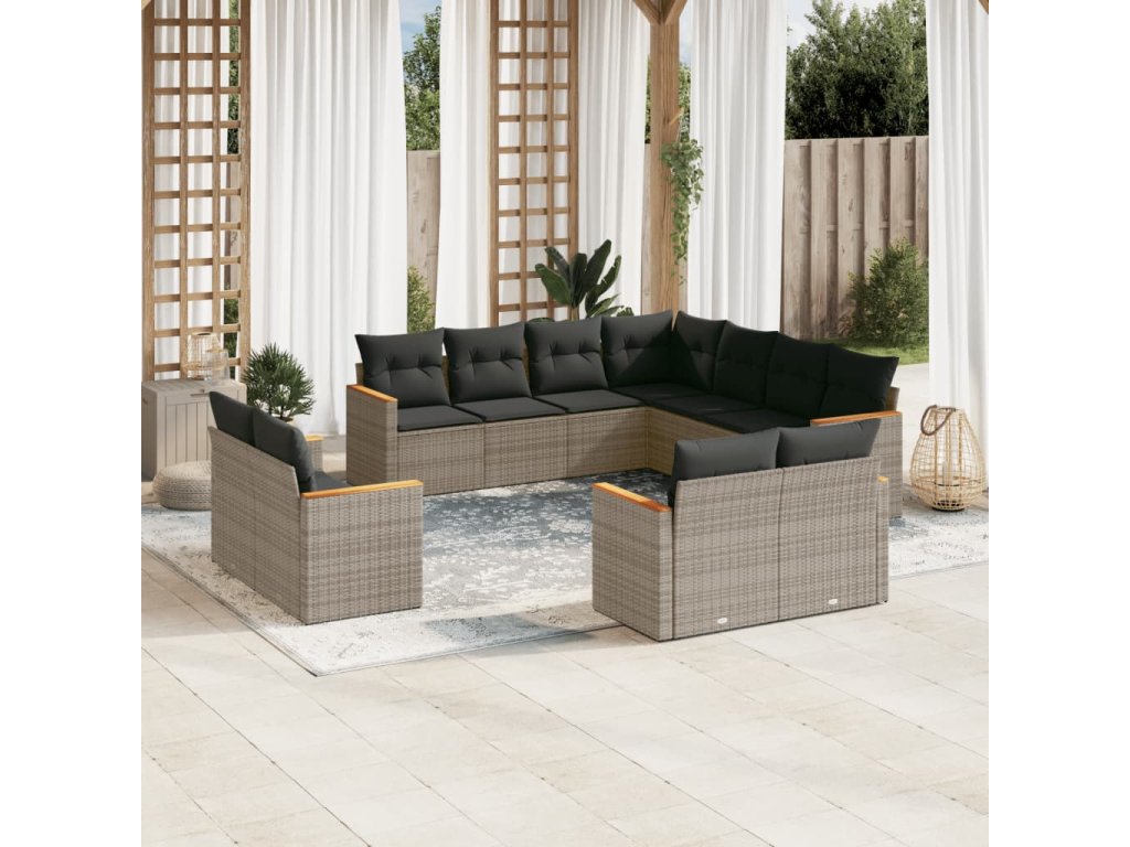 11dílná zahradní sedací souprava s poduškami šedá polyratan 3226501