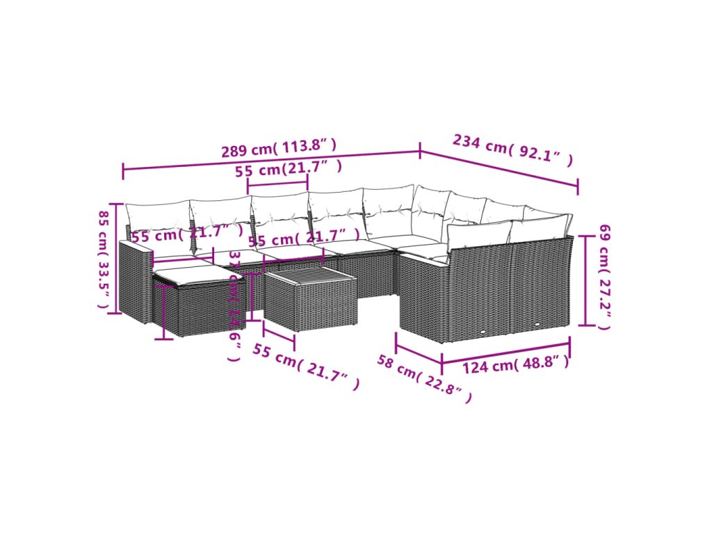 Tato zahradní sedací souprava je dokonalým doplňkem vaší zahrady, terasy nebo dvorku a poskytne vám pohodlné a příjemné místo, kde si můžete povídat s rodinou a přáteli nebo jen tak odpočívat a užívat si pobyt venku.