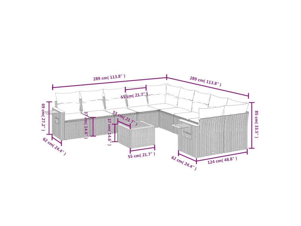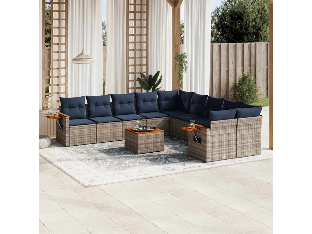 11dílná zahradní sedací souprava s poduškami šedá polyratan 3227202