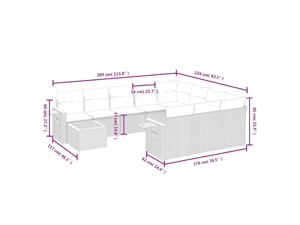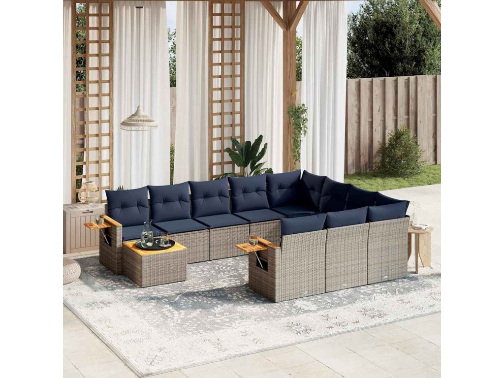 11dílná zahradní sedací souprava s poduškami šedá polyratan 3227209