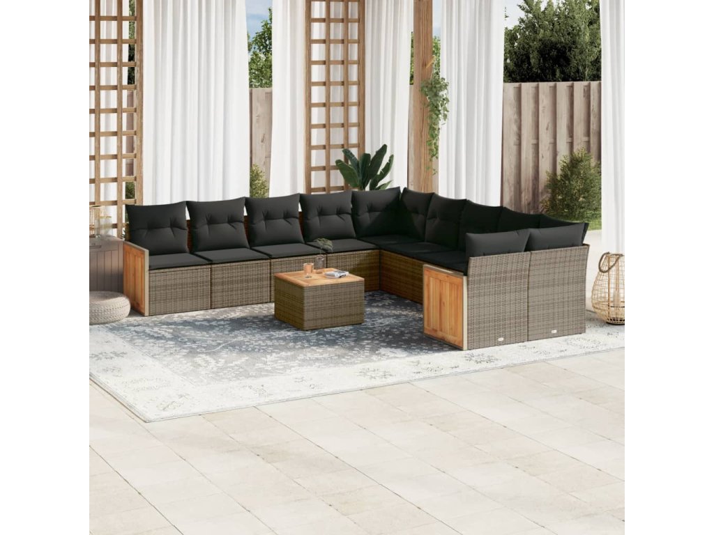 11dílná zahradní sedací souprava s poduškami šedá polyratan 3228041