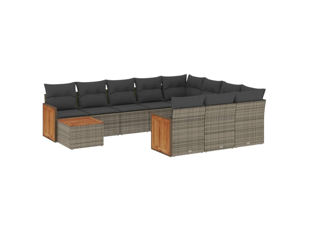11dílná zahradní sedací souprava s poduškami šedá polyratan 3228048