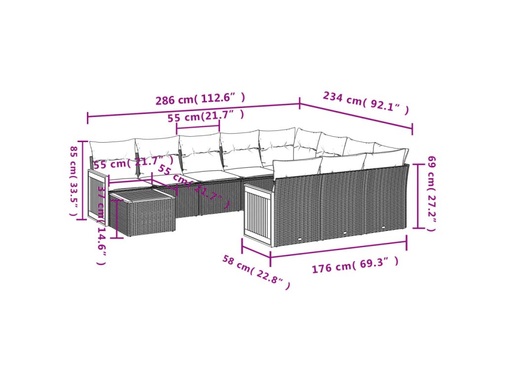 Tato zahradní sedací souprava je dokonalým doplňkem vaší zahrady, terasy nebo dvorku a poskytne vám pohodlné a příjemné místo, kde si můžete povídat s rodinou a přáteli nebo jen tak odpočívat a užívat si pobyt venku.