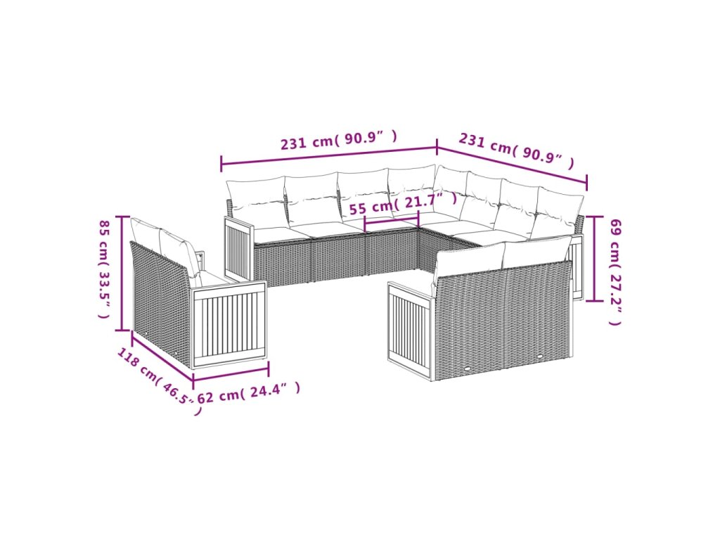 11dílná zahradní sedací souprava s poduškami šedá polyratan 3228181