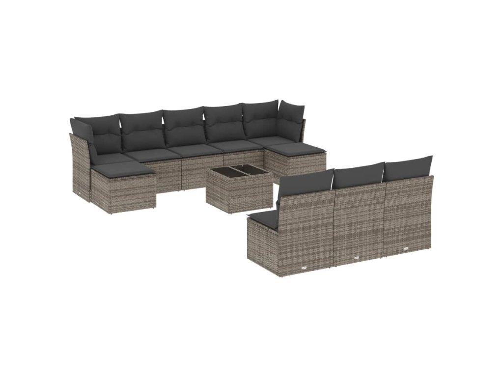 11dílná zahradní sedací souprava s poduškami šedá polyratan 3250139