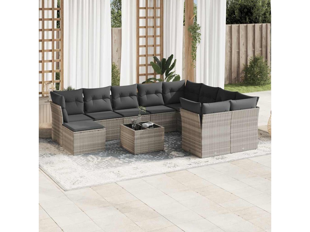 11dílná zahradní sedací souprava s poduškami šedá polyratan 3250441