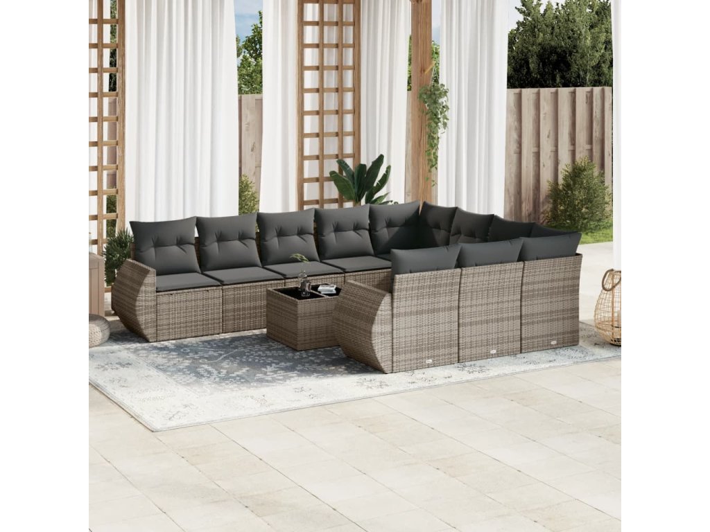11dílná zahradní sedací souprava s poduškami šedá polyratan 3254237