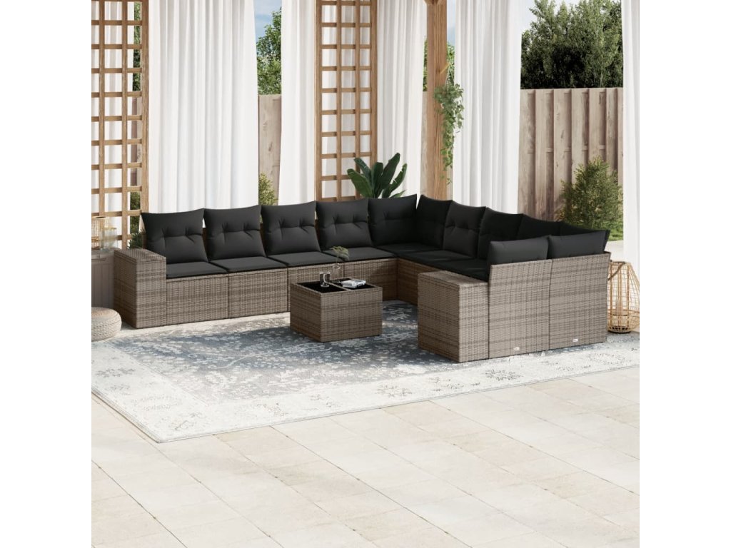 11dílná zahradní sedací souprava s poduškami šedá polyratan 3255457