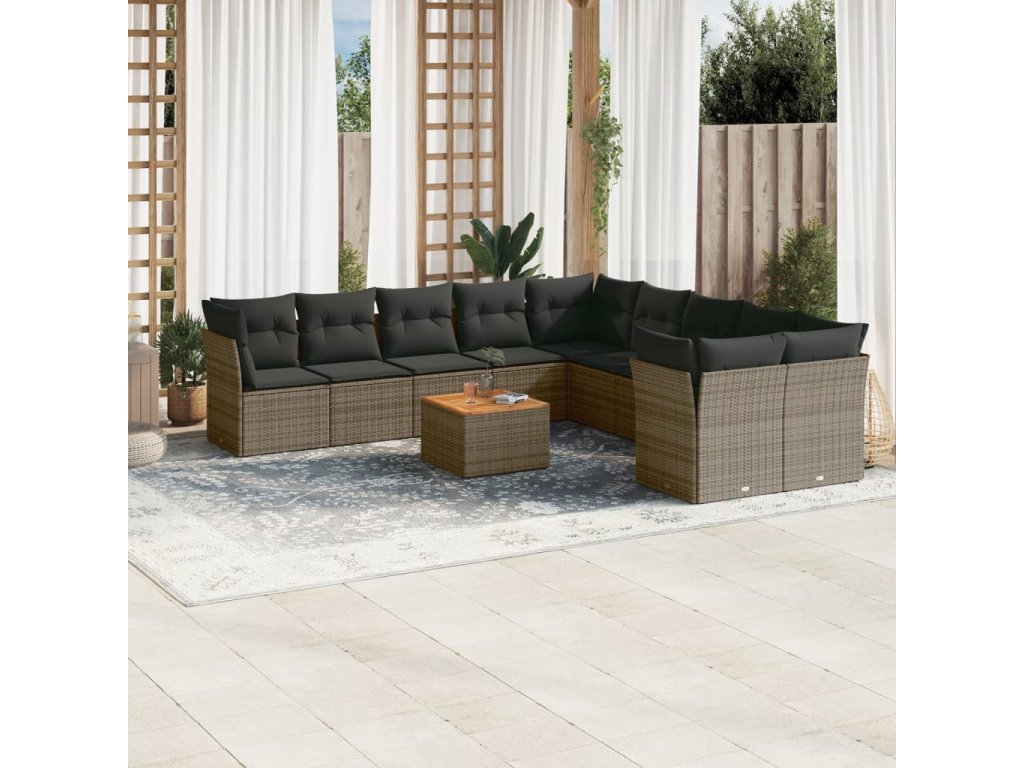 11dílná zahradní sedací souprava s poduškami šedá polyratan 3256186