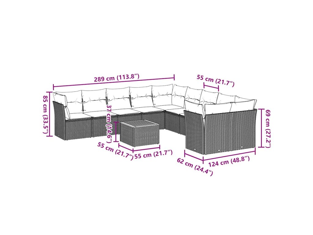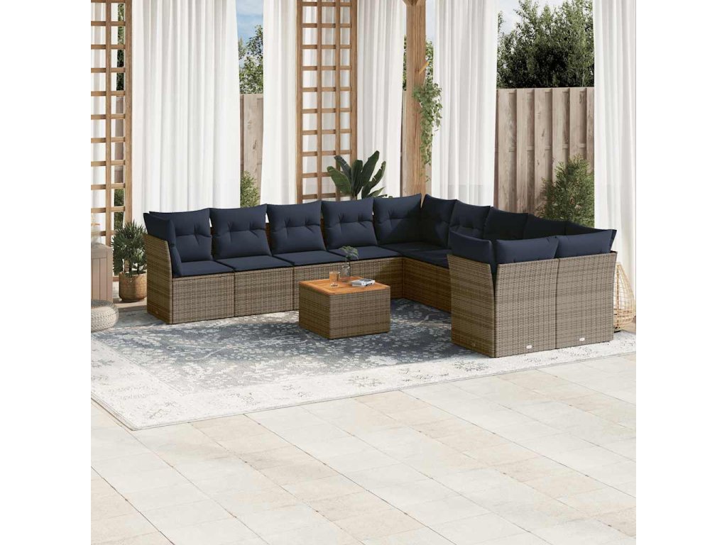11dílná zahradní sedací souprava s poduškami šedá polyratan 3256187