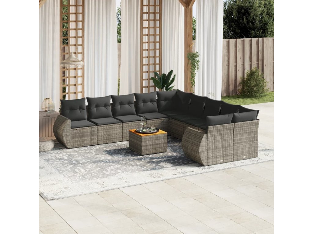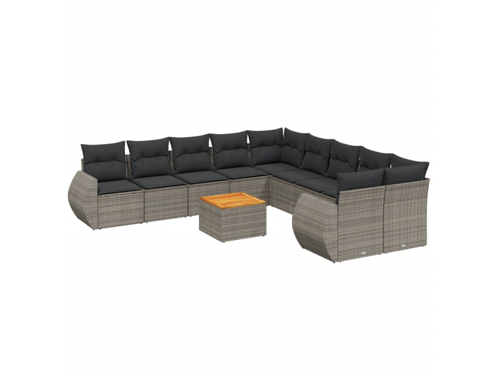 11dílná zahradní sedací souprava s poduškami šedá polyratan 3257530
