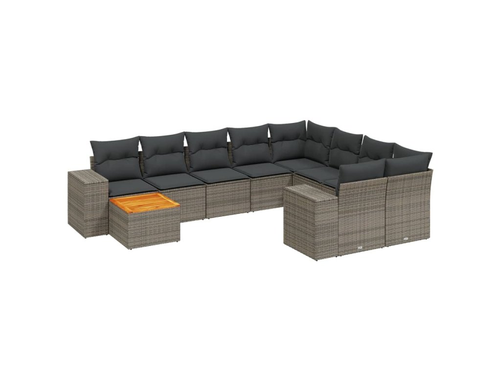 11dílná zahradní sedací souprava s poduškami šedá polyratan 3257964