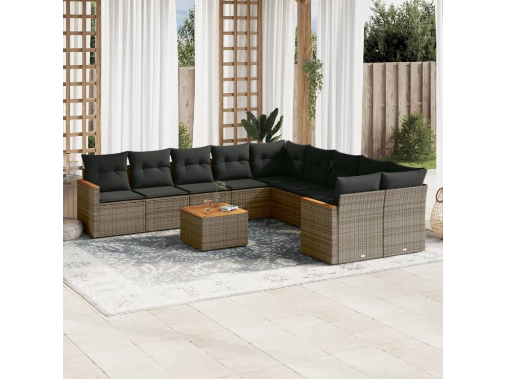 11dílná zahradní sedací souprava s poduškami šedá polyratan 3258763