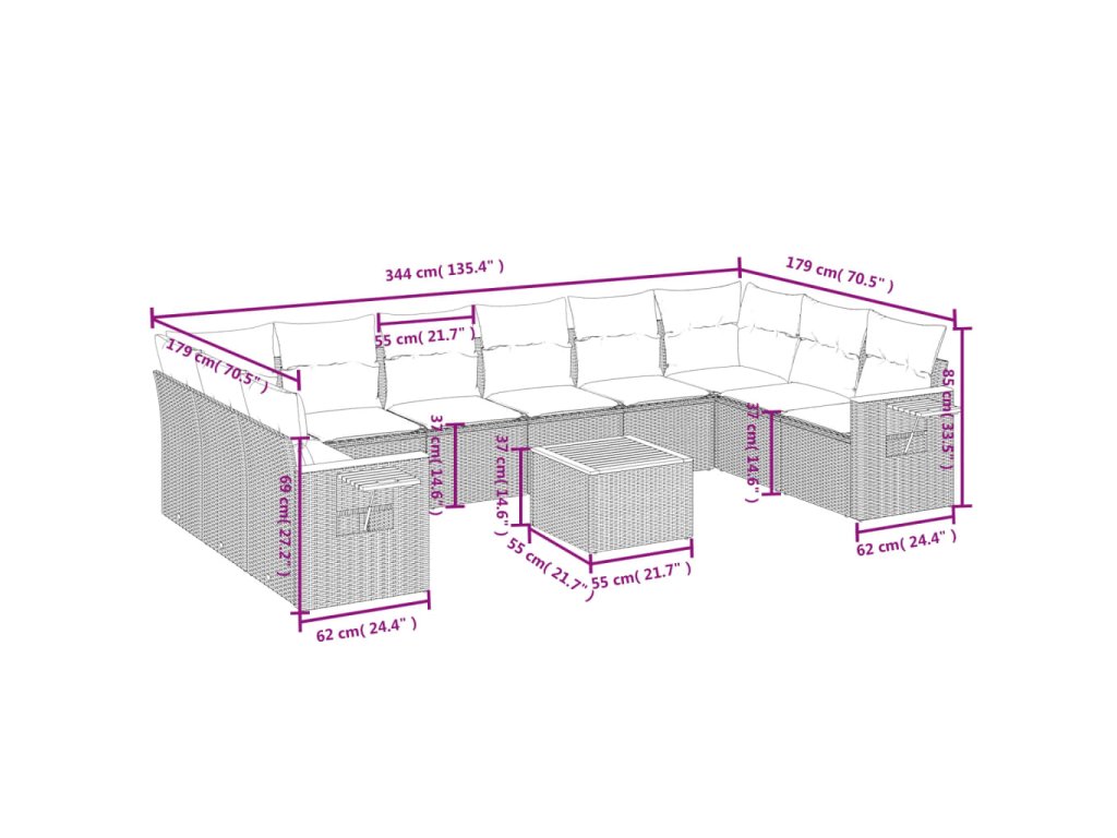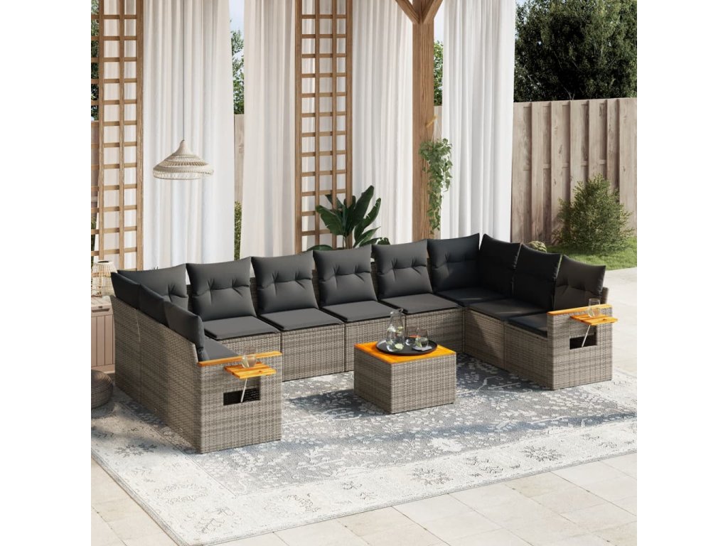 11dílná zahradní sedací souprava s poduškami šedá polyratan 3259575