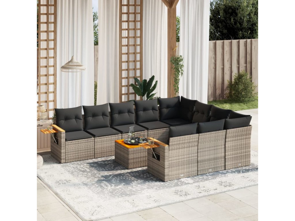 11dílná zahradní sedací souprava s poduškami šedá polyratan 3259589