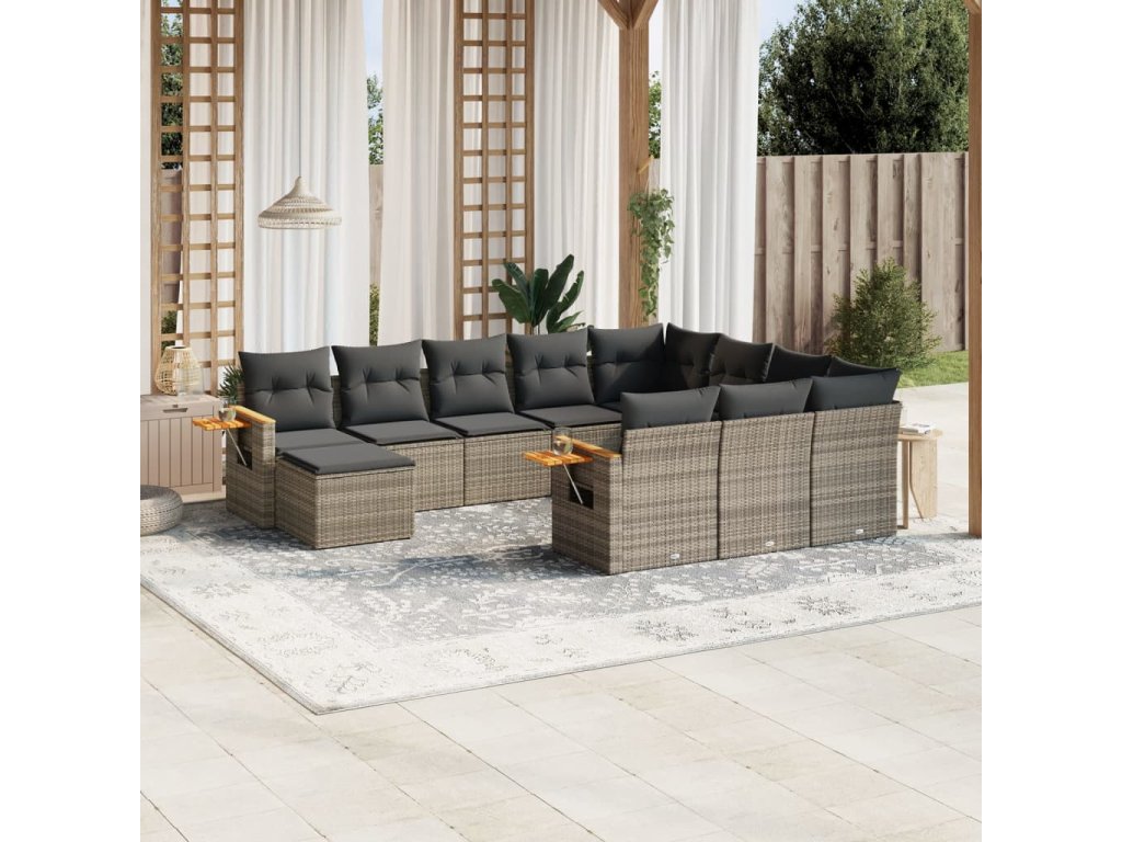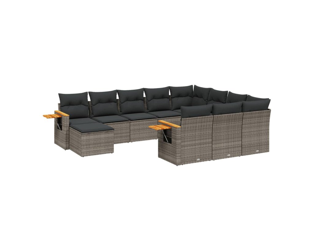11dílná zahradní sedací souprava s poduškami šedá polyratan 3259610