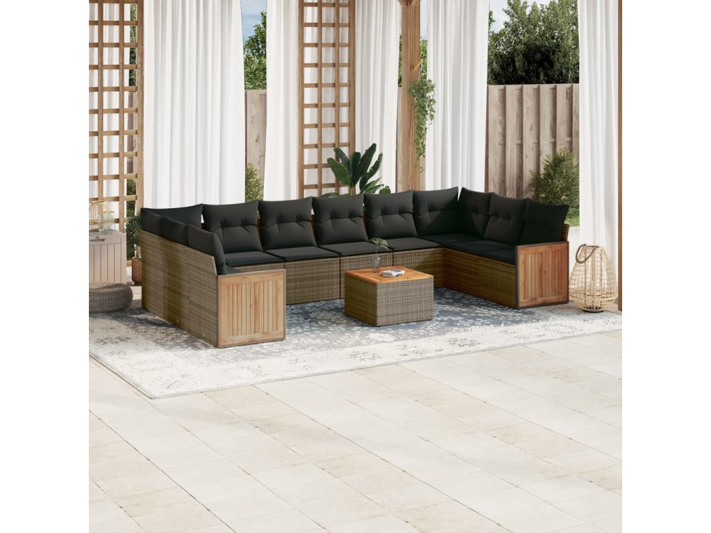 11dílná zahradní sedací souprava s poduškami šedá polyratan 3260415