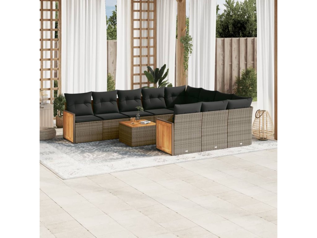 11dílná zahradní sedací souprava s poduškami šedá polyratan 3260429