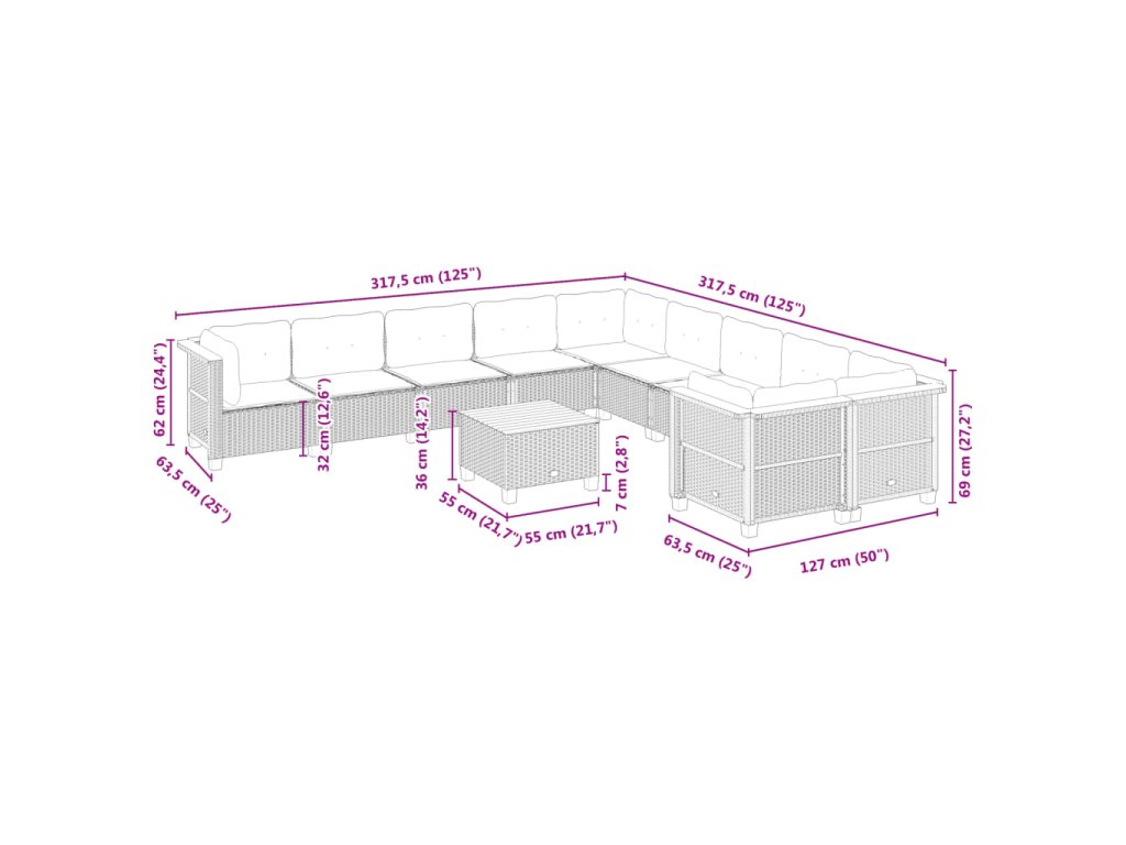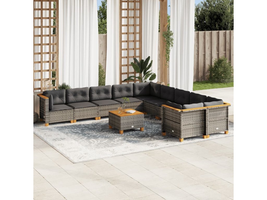 11dílná zahradní sedací souprava s poduškami šedá polyratan 3262050