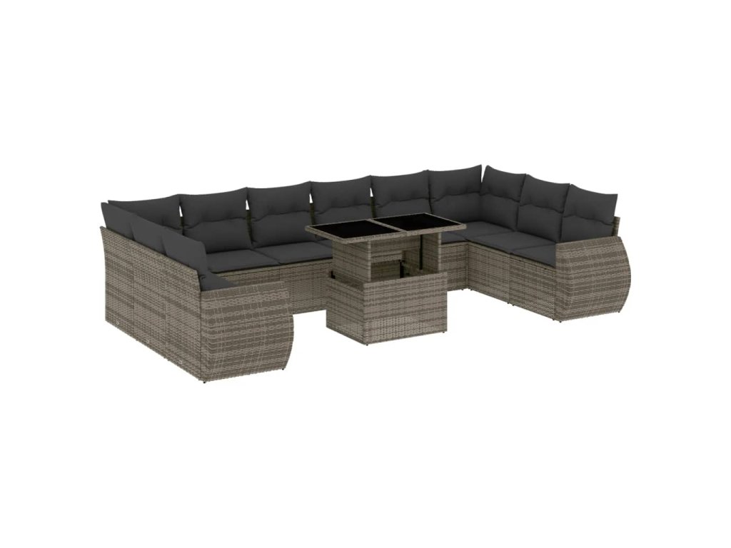 11dílná zahradní sedací souprava s poduškami šedá polyratan 3268780
