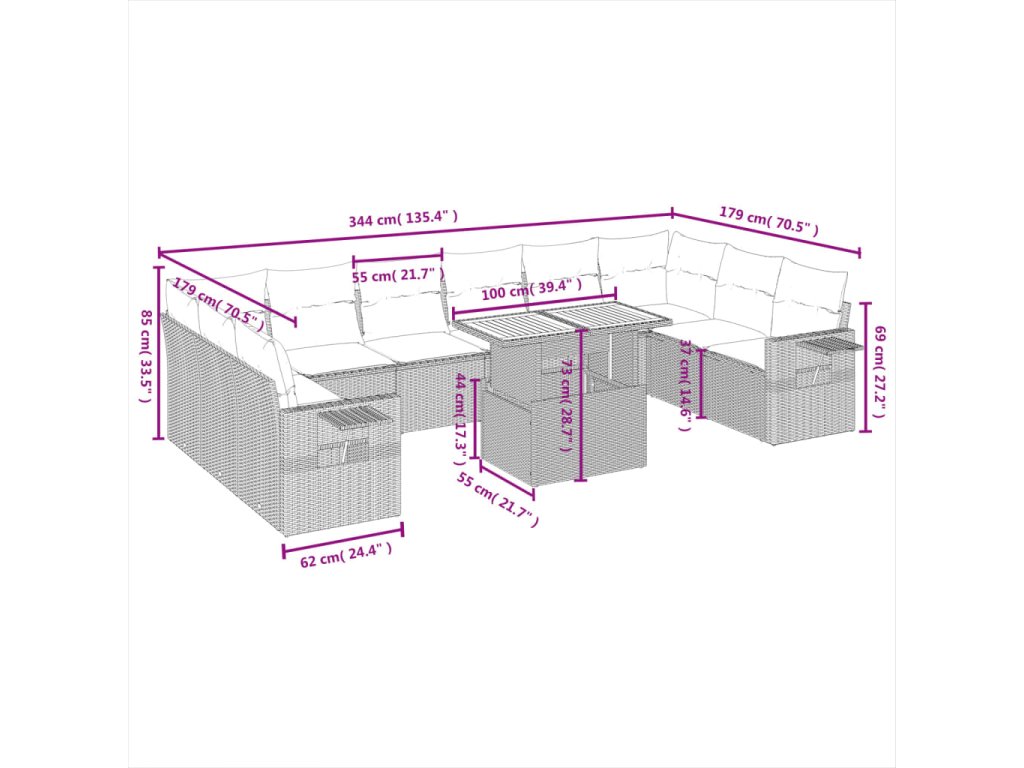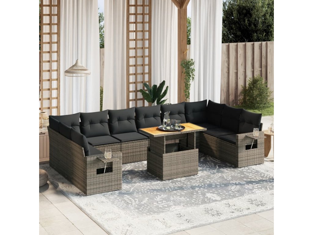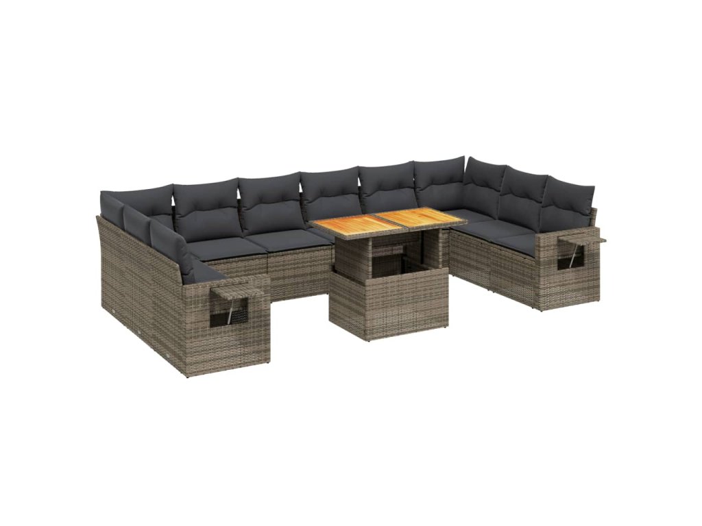 11dílná zahradní sedací souprava s poduškami šedá polyratan 3271928