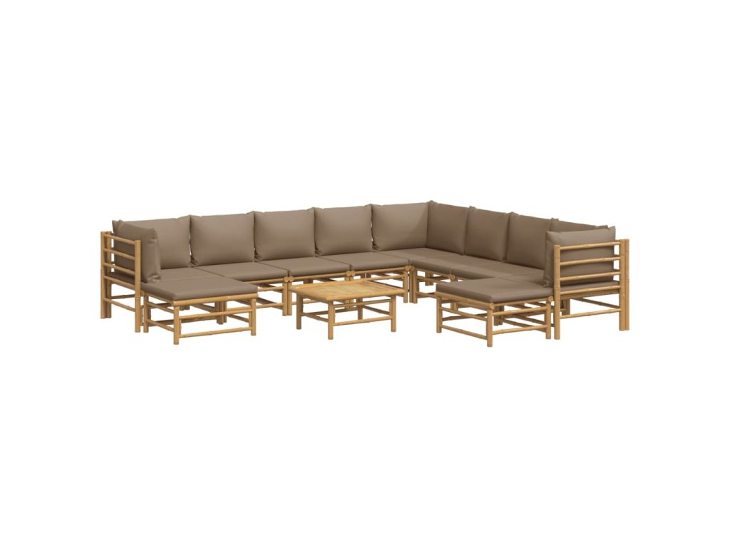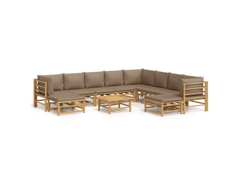 11dílná zahradní sedací souprava s taupe poduškami bambus 3155129
