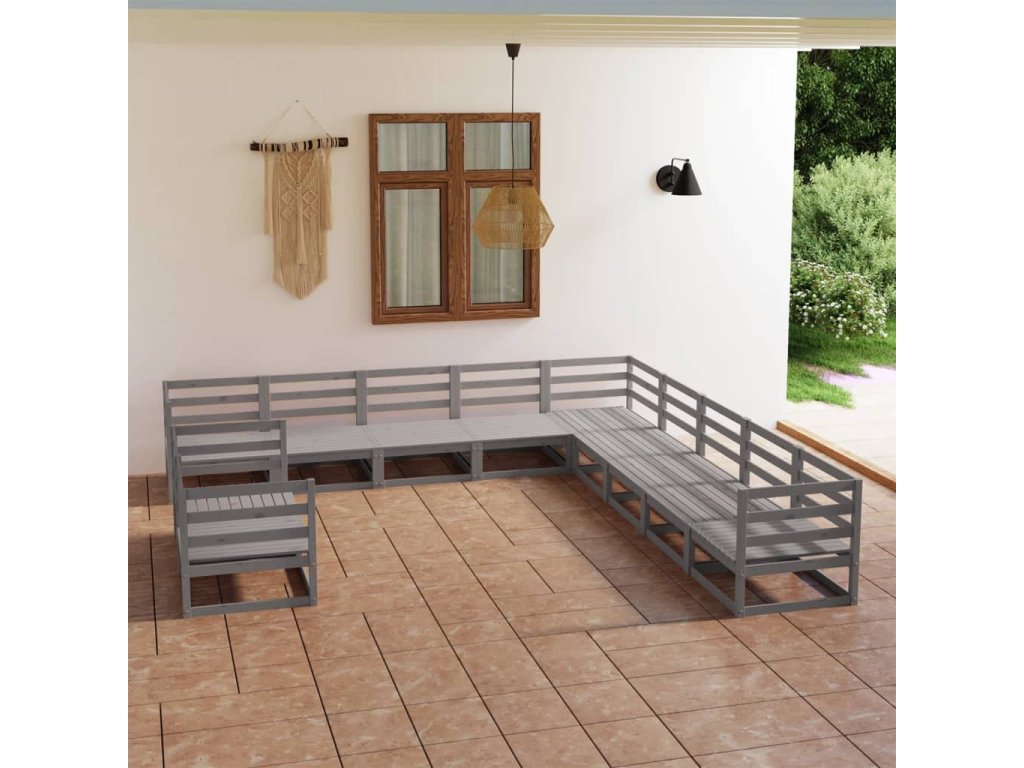11dílná zahradní sedací souprava šedá masivní borovice 3075936