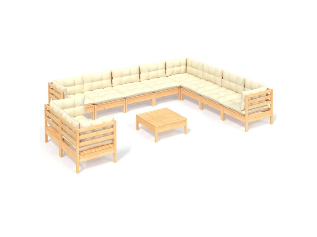 11dílná zahradní souprava krémové podušky masivní borovice 3096917