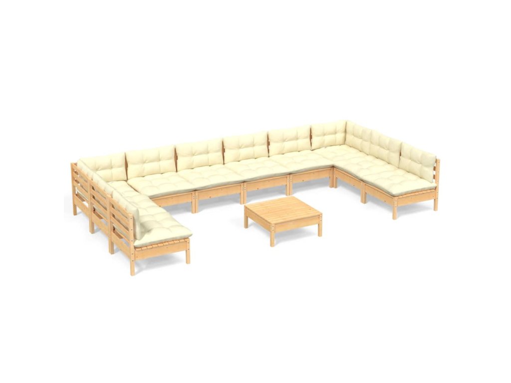 11dílná zahradní souprava krémové podušky masivní borovice 3097193