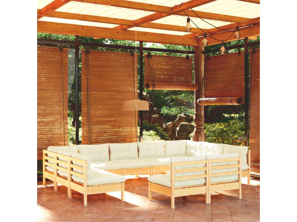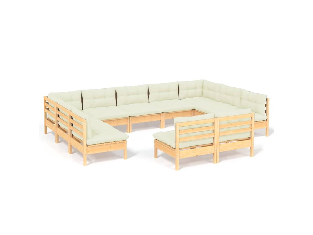 11dílná zahradní souprava krémové podušky masivní borovice 3097211