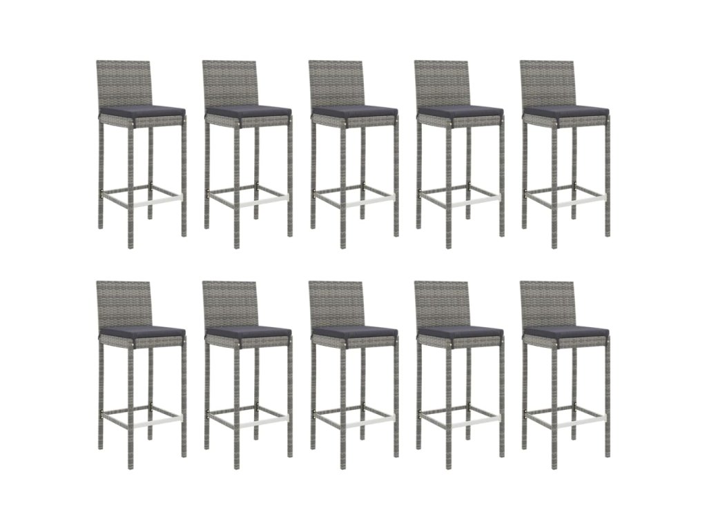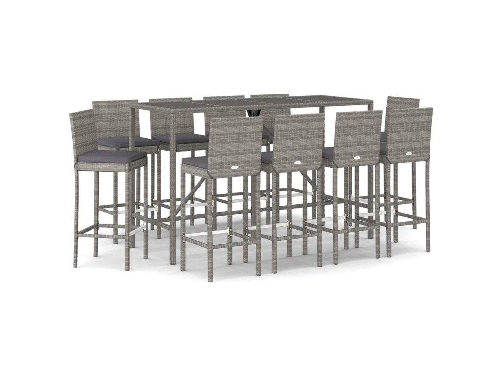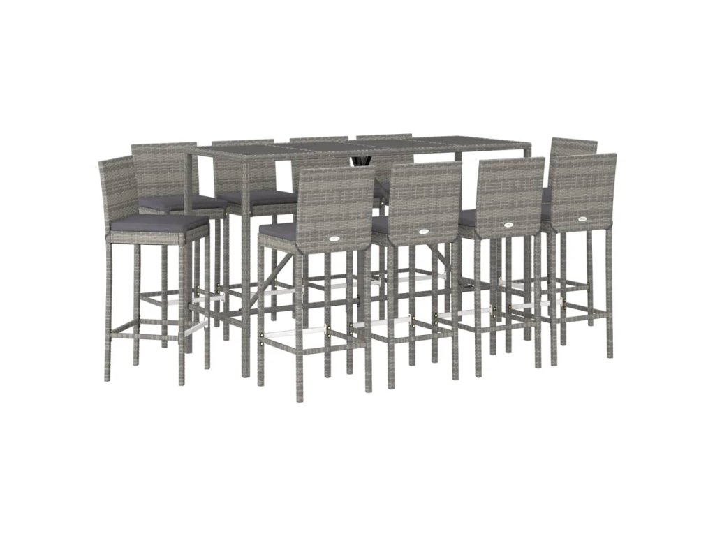11dílný zahradní barový set s poduškami šedý polyratan 3187650
