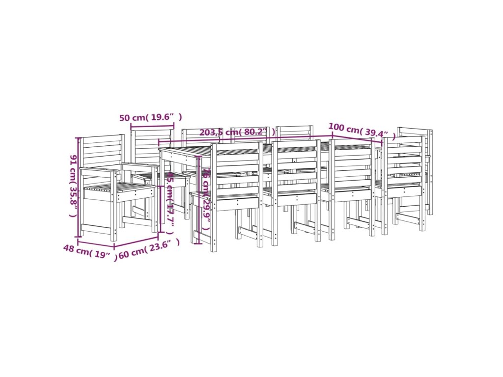 11dílný zahradní jídelní set bílý masivní borové dřevo 3154720
