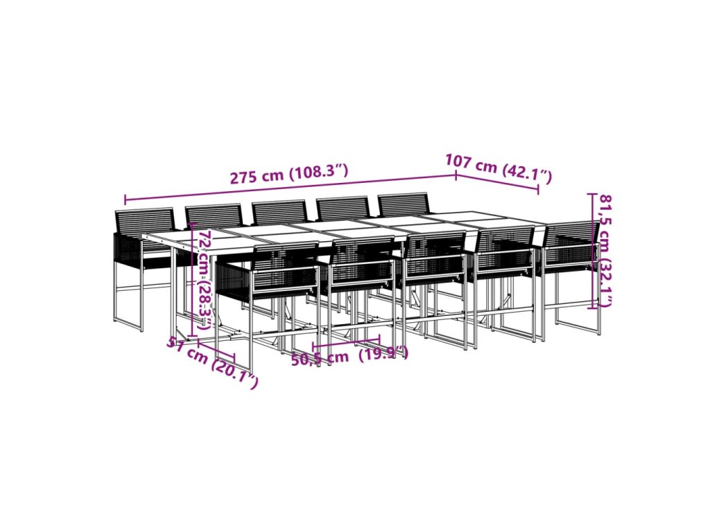 - Robustní a stabilní rám: Ocelový rám s práškovým nástřikem zajišťuje, že zahradní nábytek je pevný a stabilní pro každodenní venkovní použití.