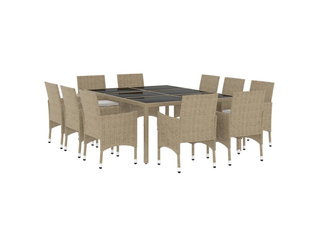 11dílný zahradní jídelní set polyratan béžový 3058564
