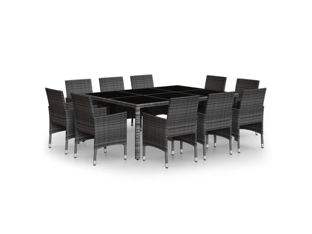 11dílný zahradní jídelní set polyratan šedý 3058563